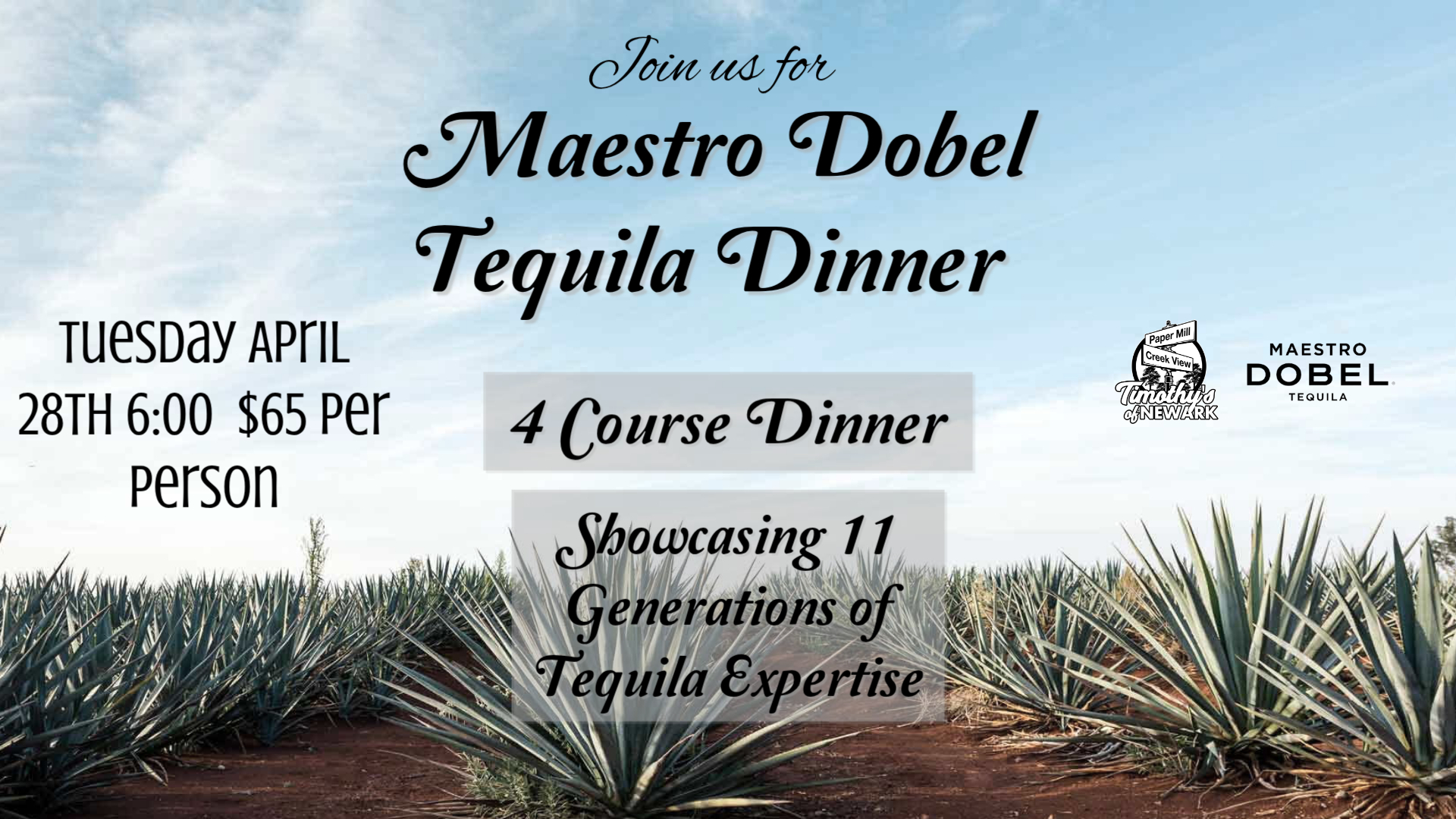 We’re bringing something special to the table! An exclusive four-course tequila dinner featuring Maestro Dobel.